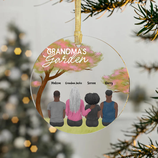 Grandma's Garden in Full Bloom with Grandkids Acrylic Ornament (PERSONALIZED)