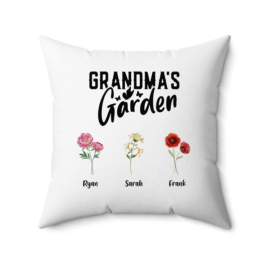 Grandma's Garden Birth Flower Faux Suede Pillow (PERSONALIZED)